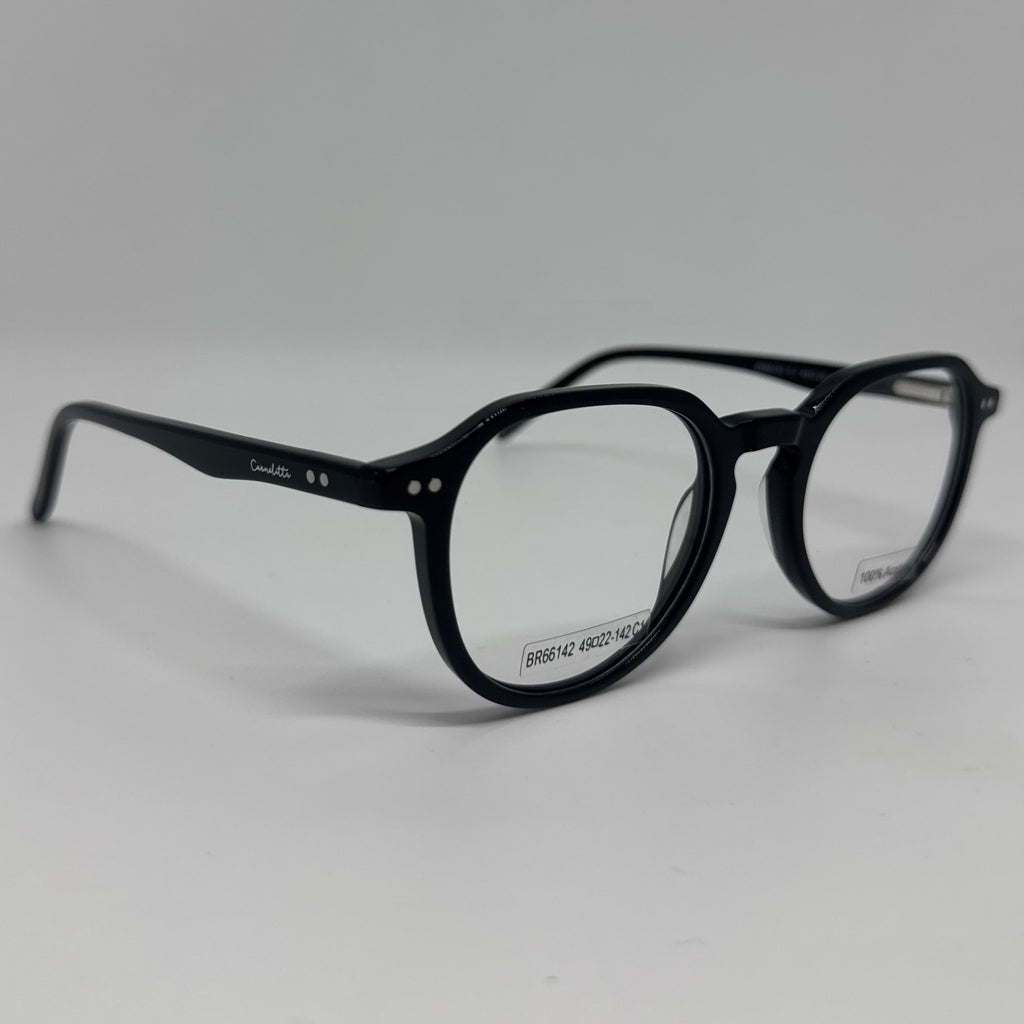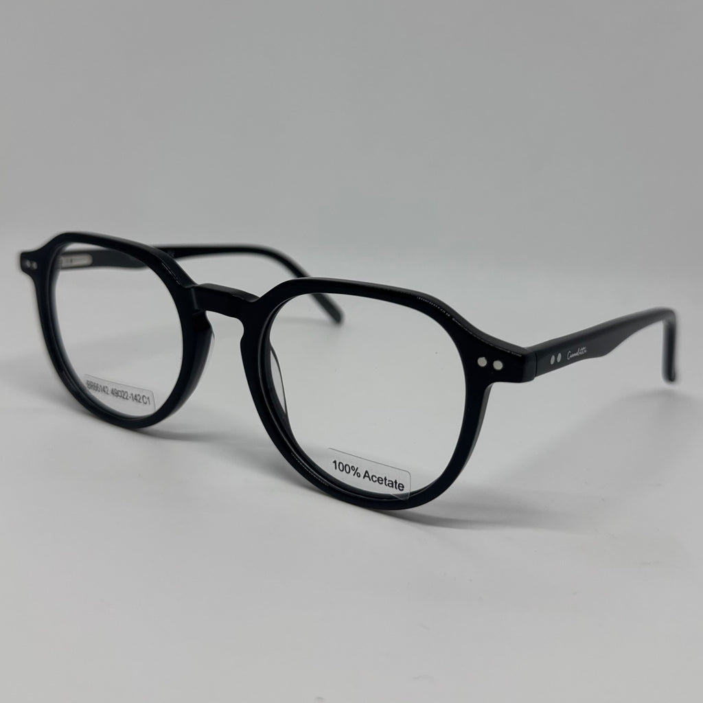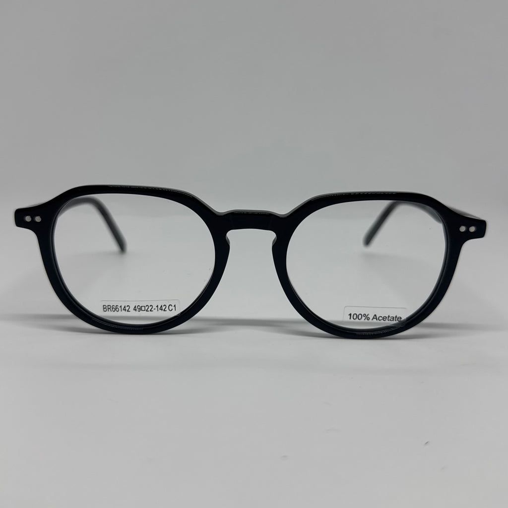 Armação com hastes em acetato preto.