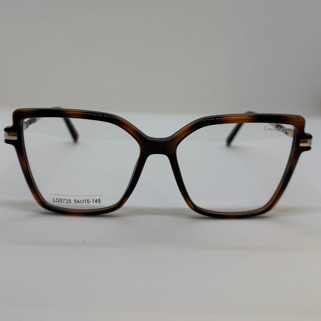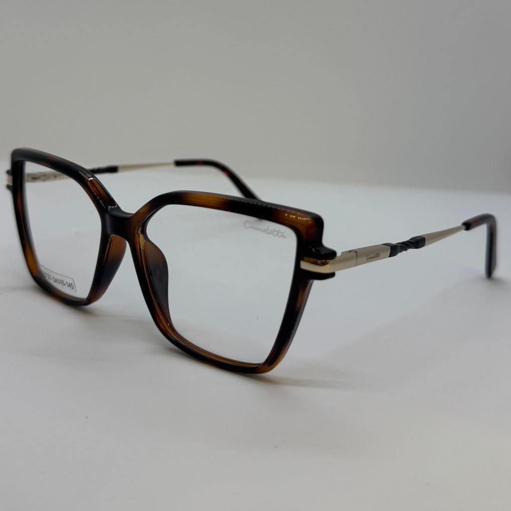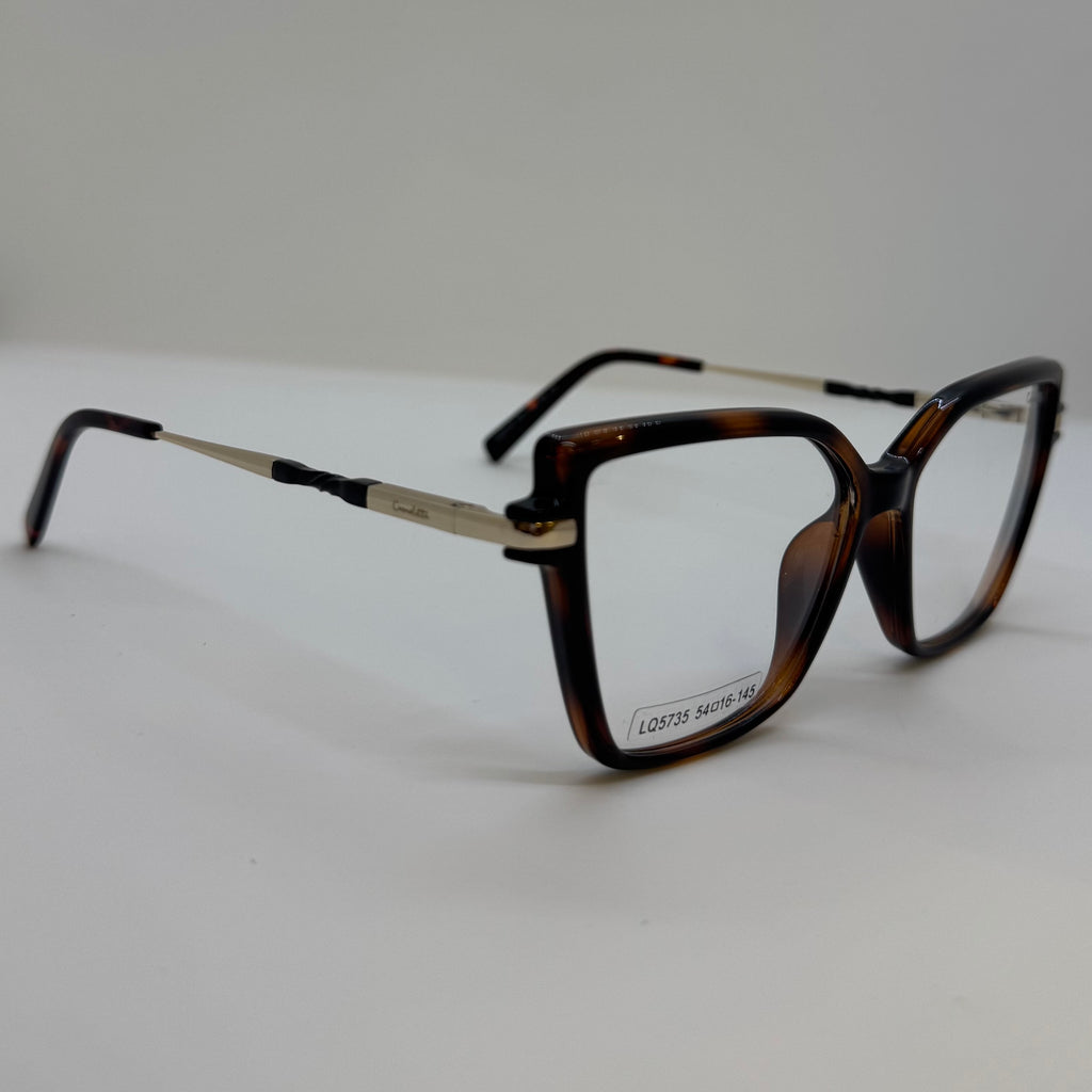 Essa armação tem um tom tartaruga escuro clássico, com nuances em âmbar, mel e marrom avermelhado, combinada com hastes metálicas douradas acetinadas e detalhes em acetato preto nas pontas.