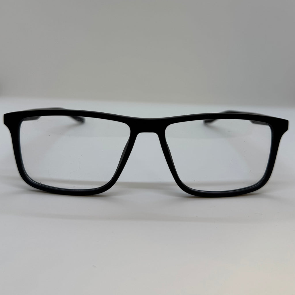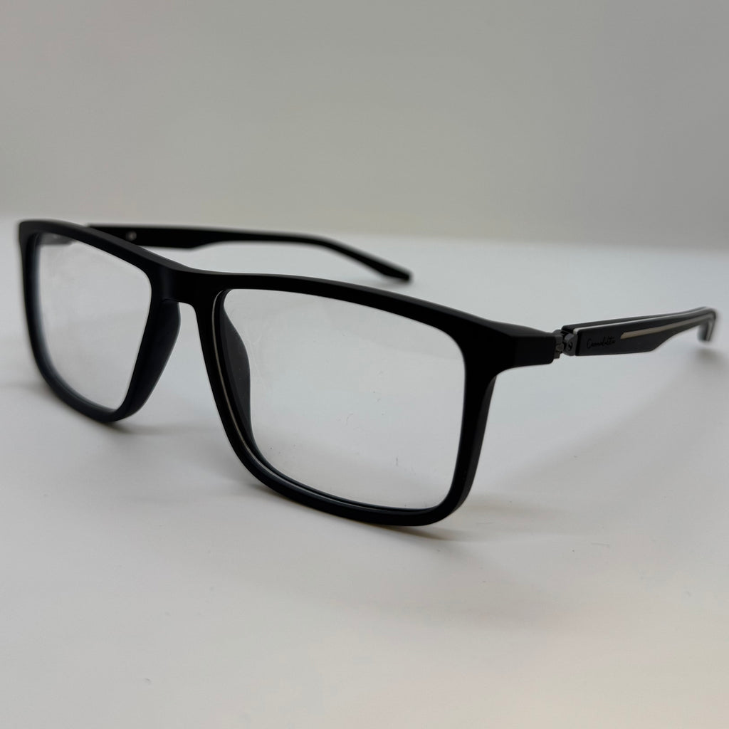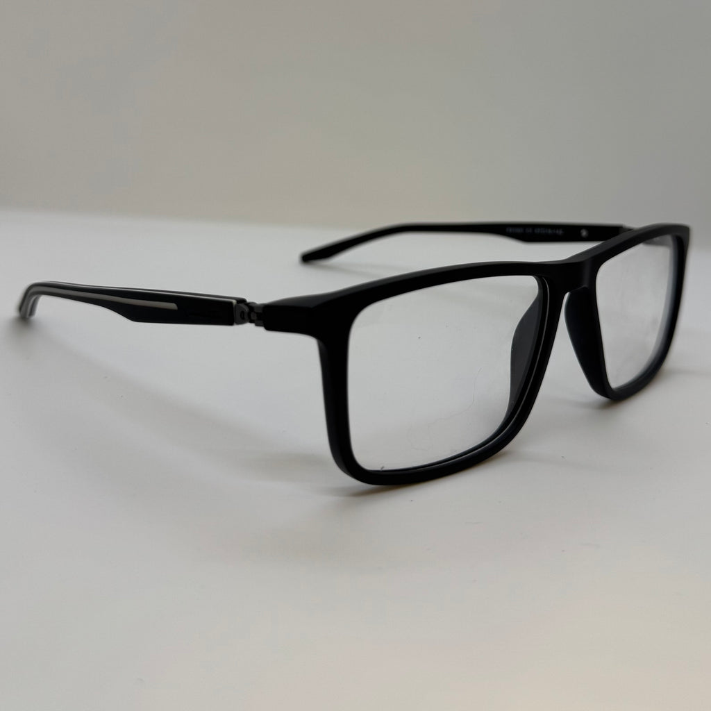 Armação em acetato preto com detalhes na cor branca nas hastes.