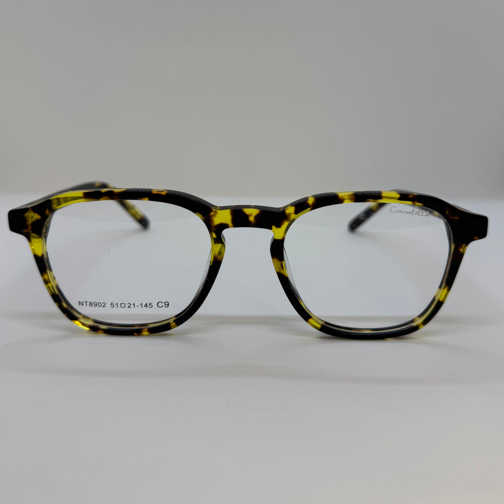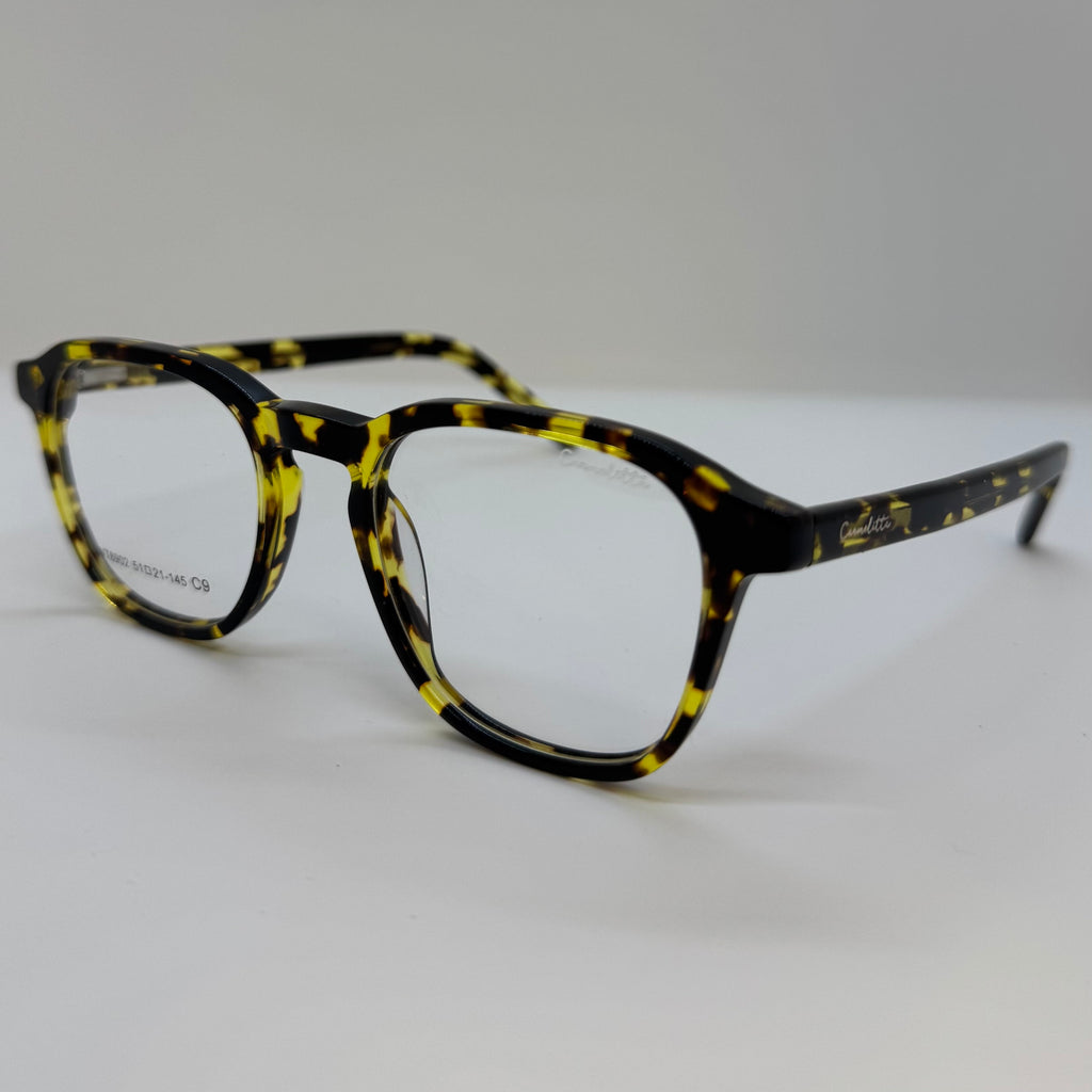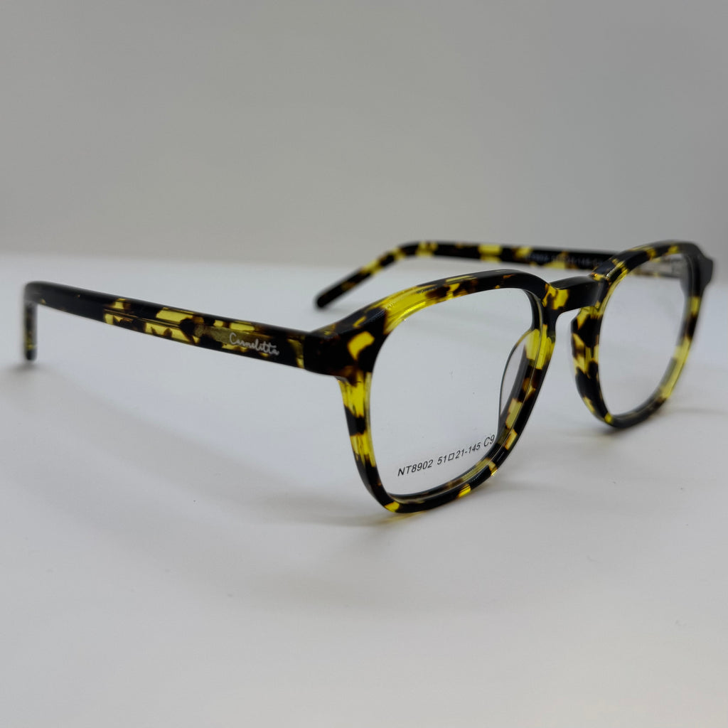 Armação em acetato tartaruga amarelado.