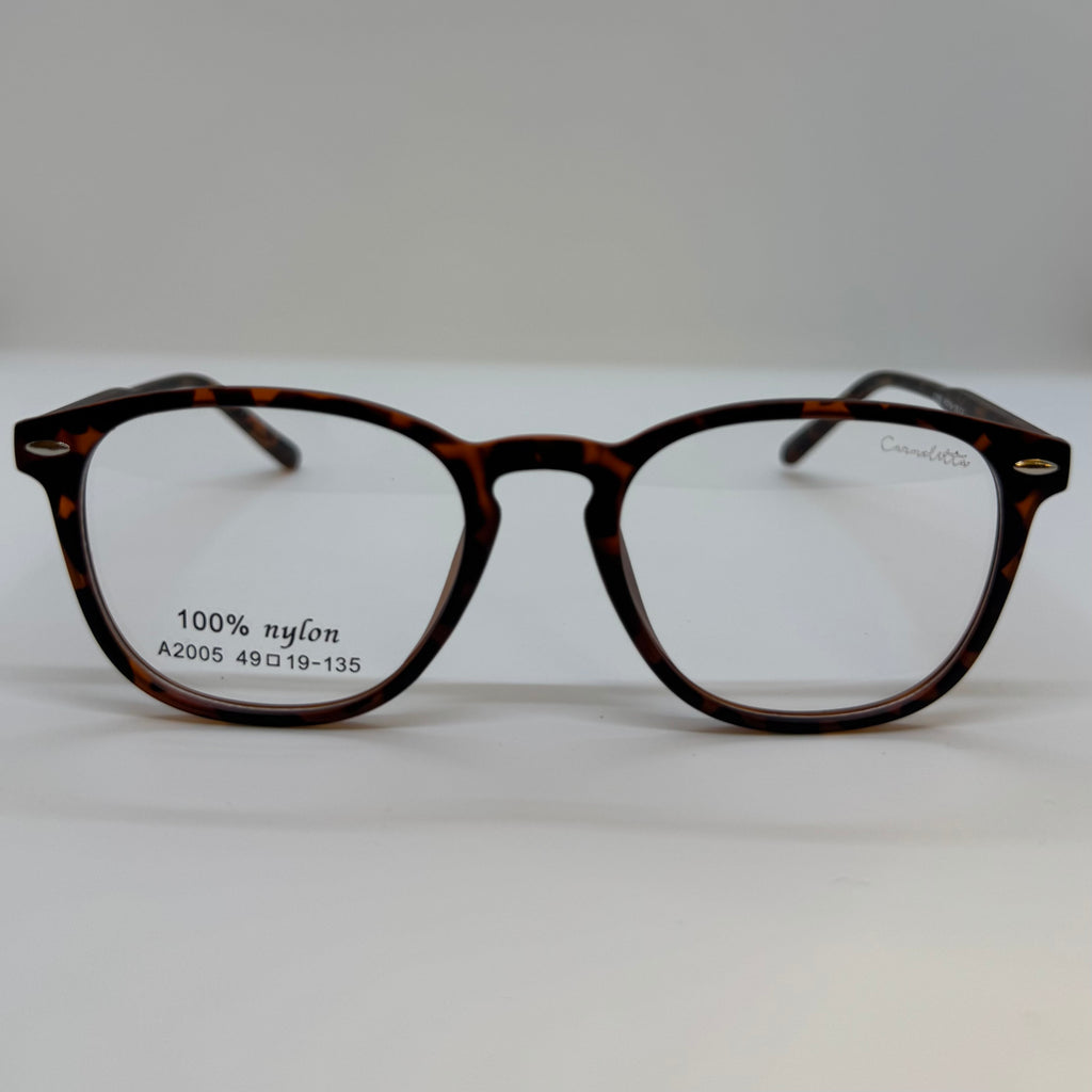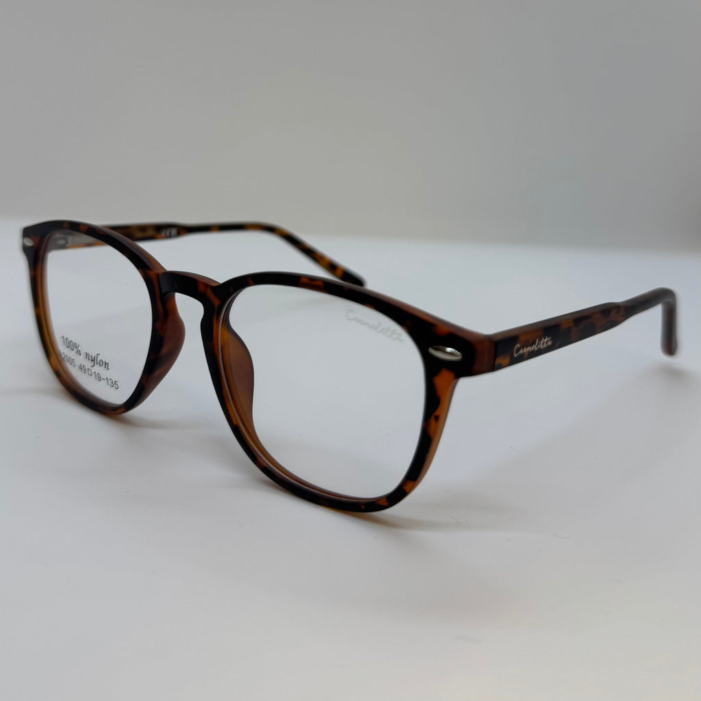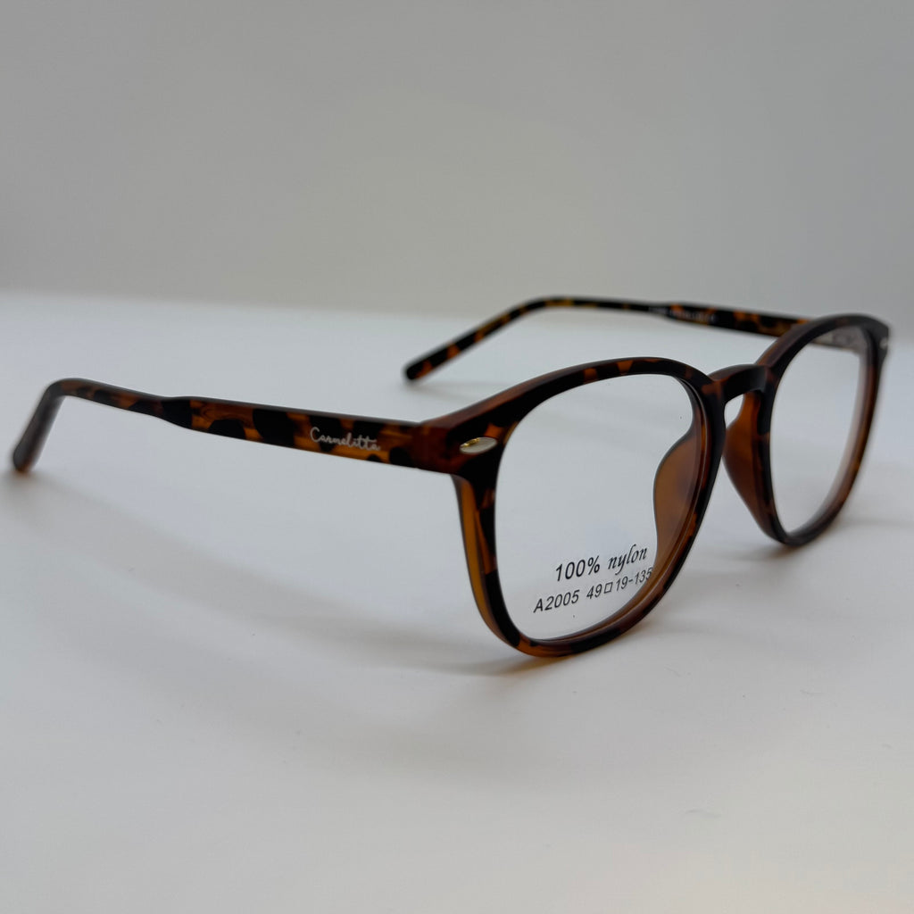 Armação em poliamida na cor tartaruga avermelhada.