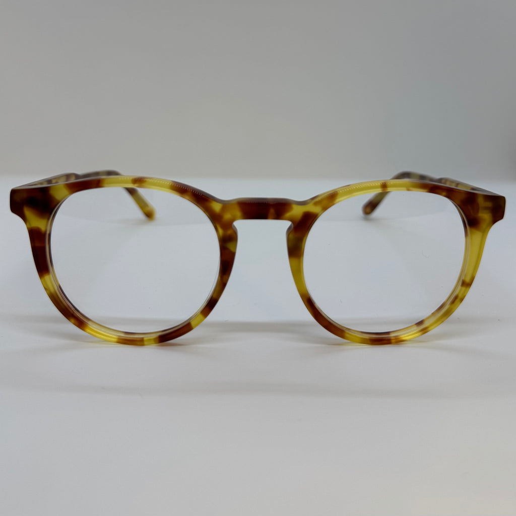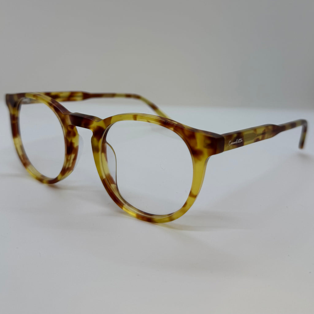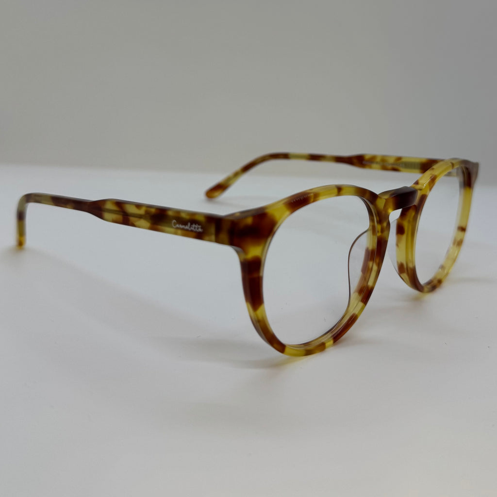Armação em acetato caramelo mesclado.