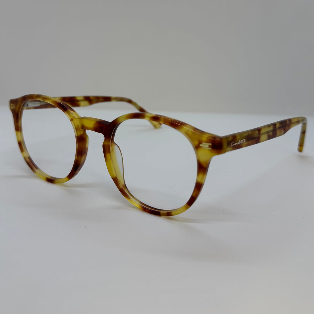 Armação em acetato caramelo mesclado.