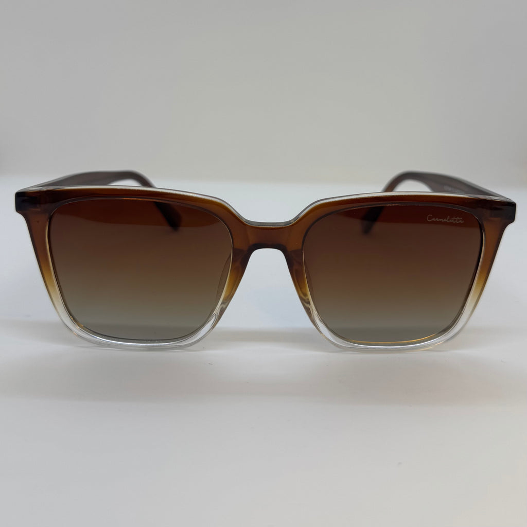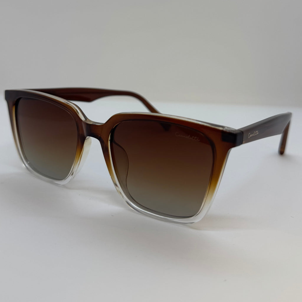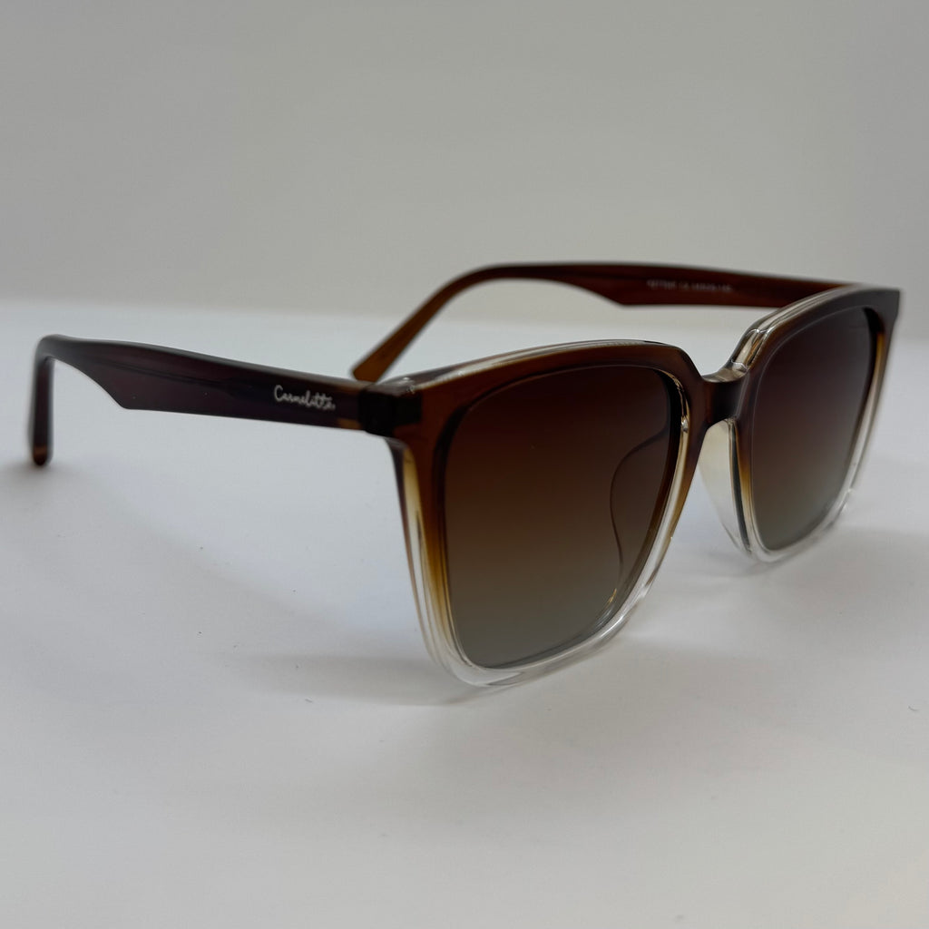 Óculos com armação em acetato de alta qualidade na cor marrom mais escuro na parte superior que vai abrangendo para o marrom mais claro na parte inferior trazendo um efeito degradê, as hastes com encaixe confortável em marrom, lentes em marrom degradê que proporcionam um melhor conforto visual, além de possuir um formato quadrado que combina com diversos tipos de rosto.