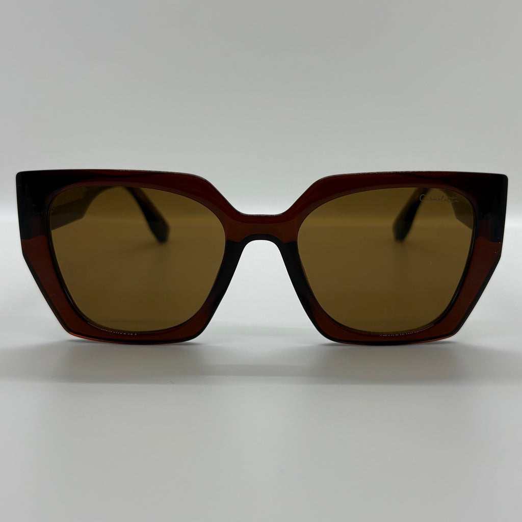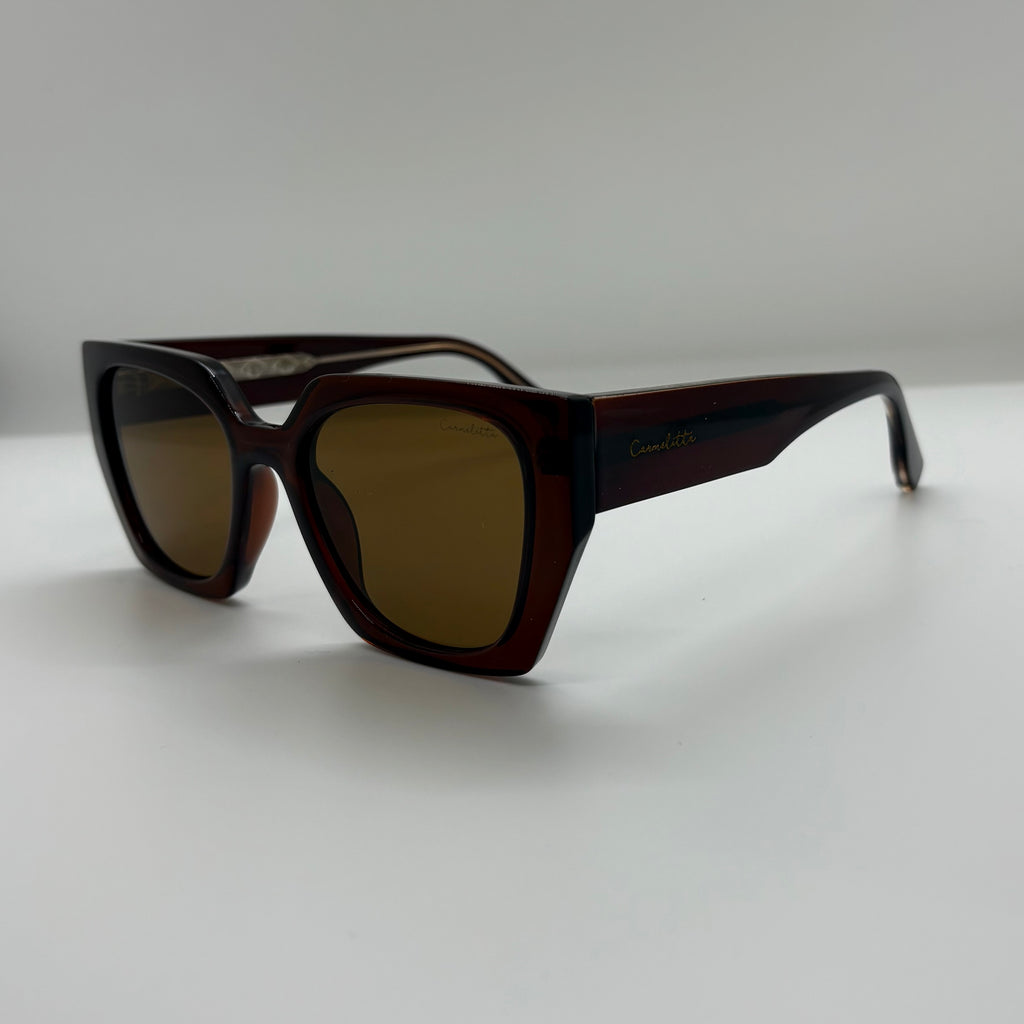 óculos com armação e hastes em marrom escuro,de acetato, e lentes em marrom suave.