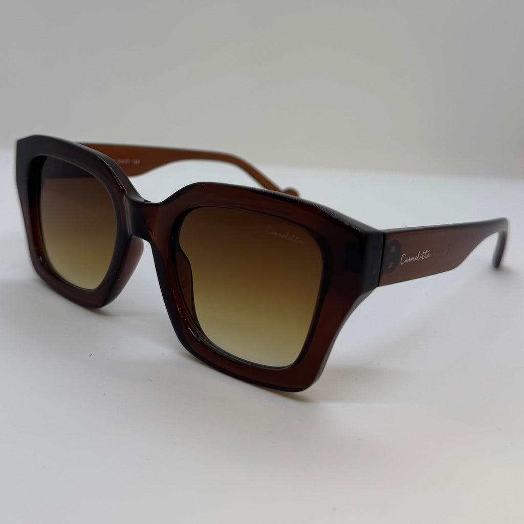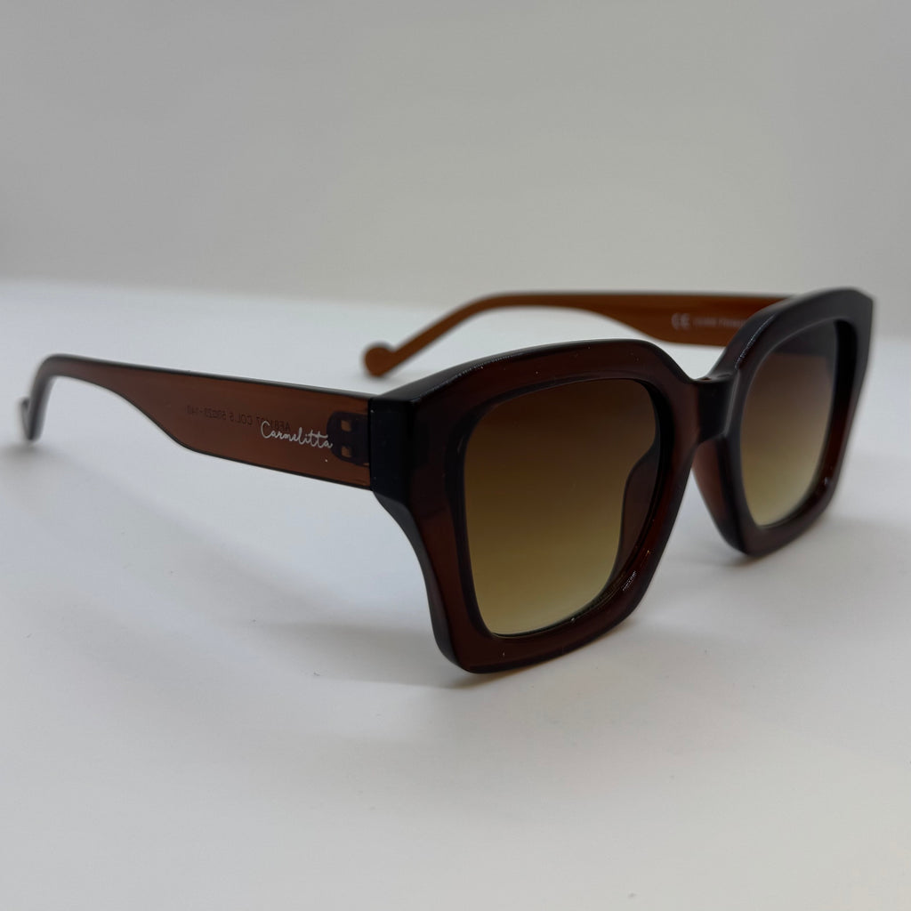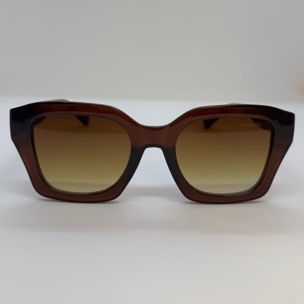 Óculos com armação de alta resistência na cor marrom translúcido, as hastes com encaixe confortável na mesma cor marrom da parte frontal, lentes em tom marrom que pretendem melhorar a visualização, além de apresentar um formato quadrado diferenciado que traz um ar mais despojado e moderno ao seu estilo.