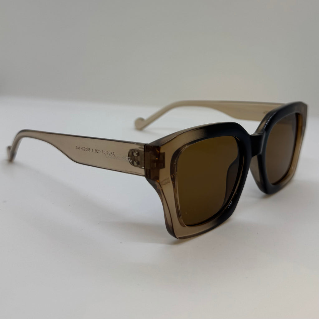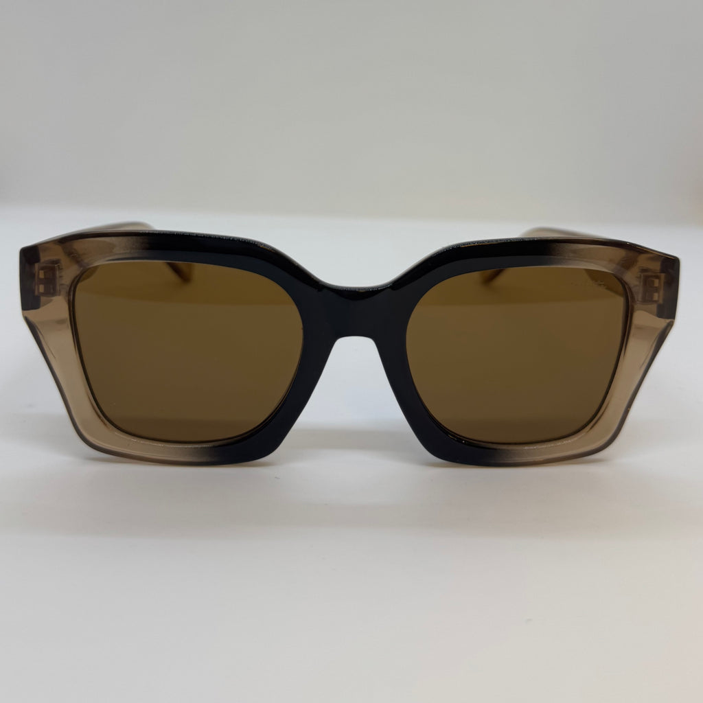 Óculos com armação de alta resistência na cor marrom escuro no meio e as laterais abrangendo para o marrom claro trazendo um efeito degradê, as hastes com encaixe confortável na cor marrom claro translúcido, lentes em tom marrom que pretendem melhorar a visualização, além de apresentar um formato quadrado diferenciado que traz um ar mais despojado e moderno ao seu estilo.