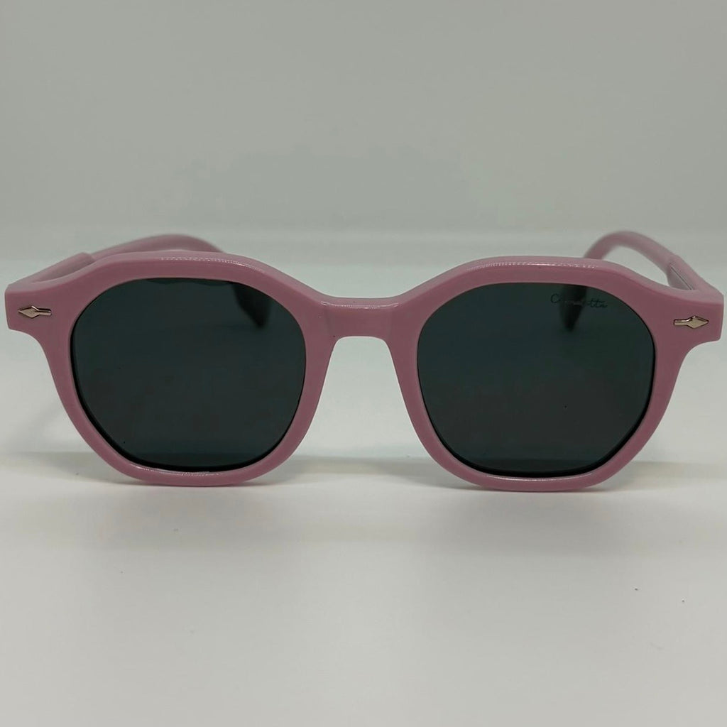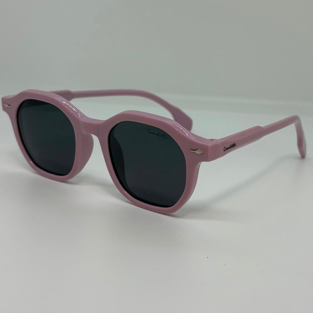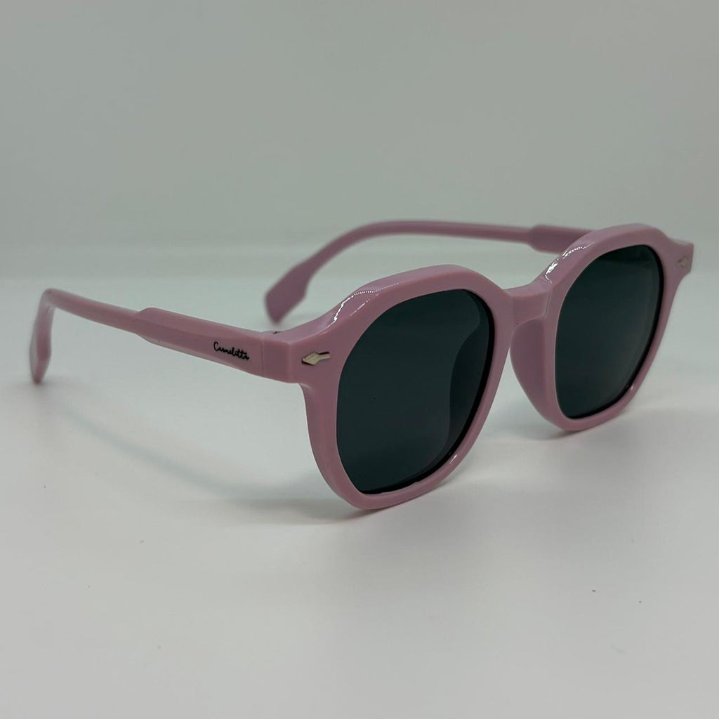 Óculos com hastes flexível em silicone rosa com lente preta polarizada. ( não quebra )