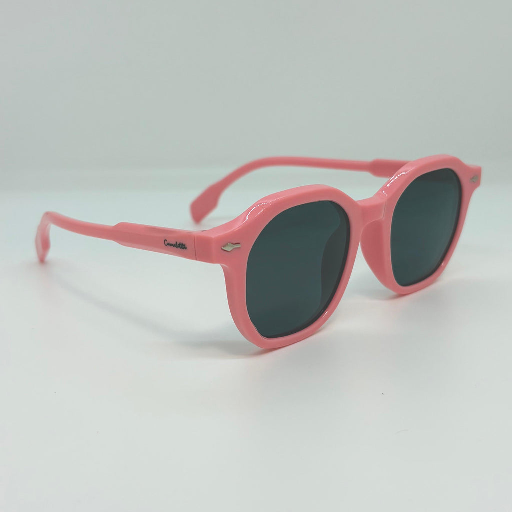 Óculos com hastes flexível em silicone rosa Pink com lente preta polarizada. ( não quebra )