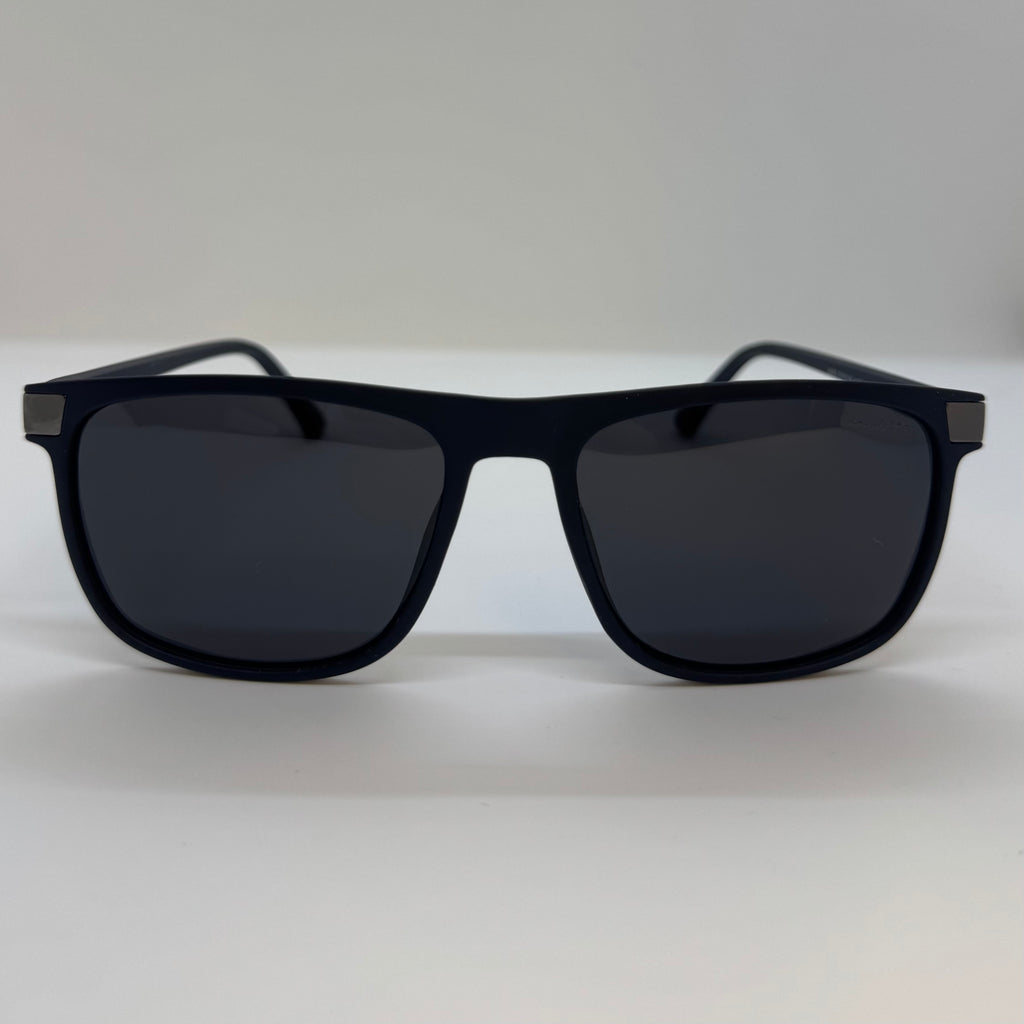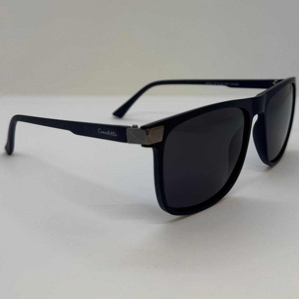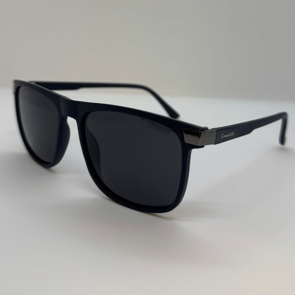Óculos com hastes em acetato preto com lente preta polarizado.