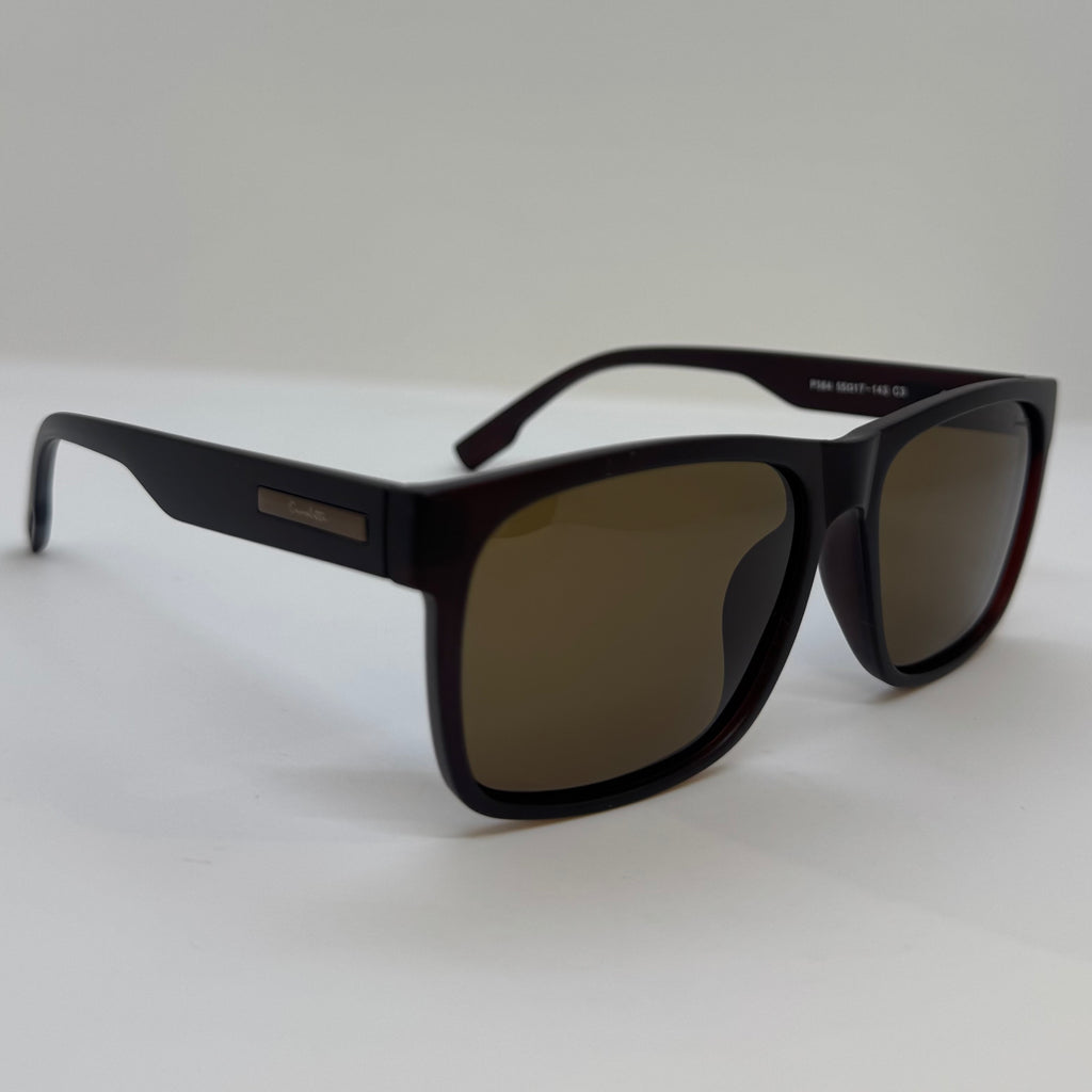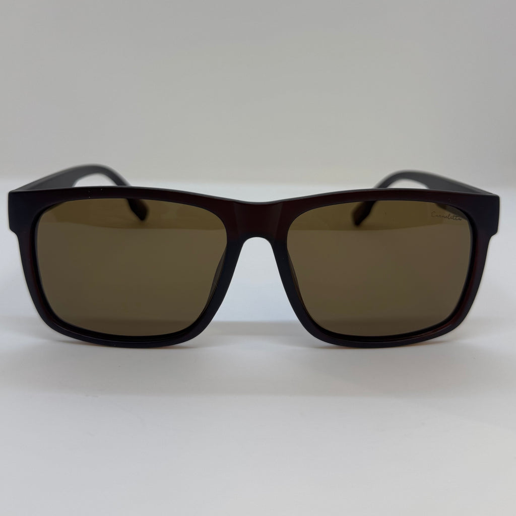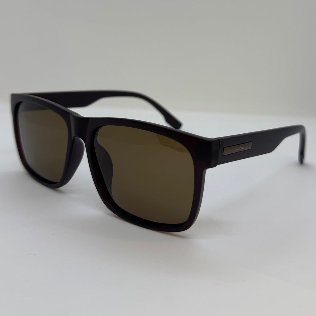 Óculos com hastes em acetato marrom com lente marrom polarizada.