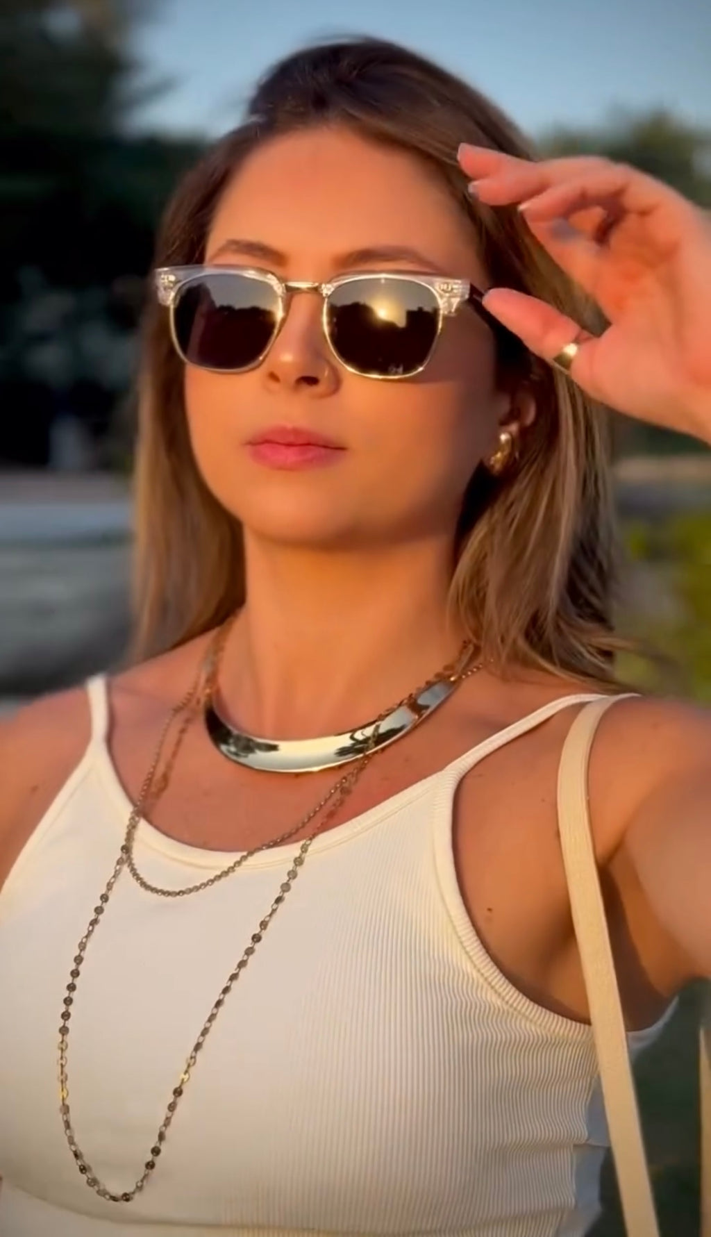 Óculos com hastes em acetato premium na cor tartaruga, frente transparente e lente preta.