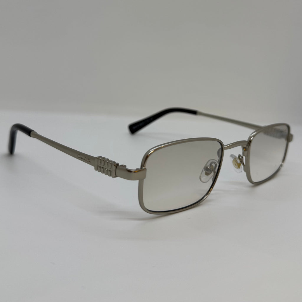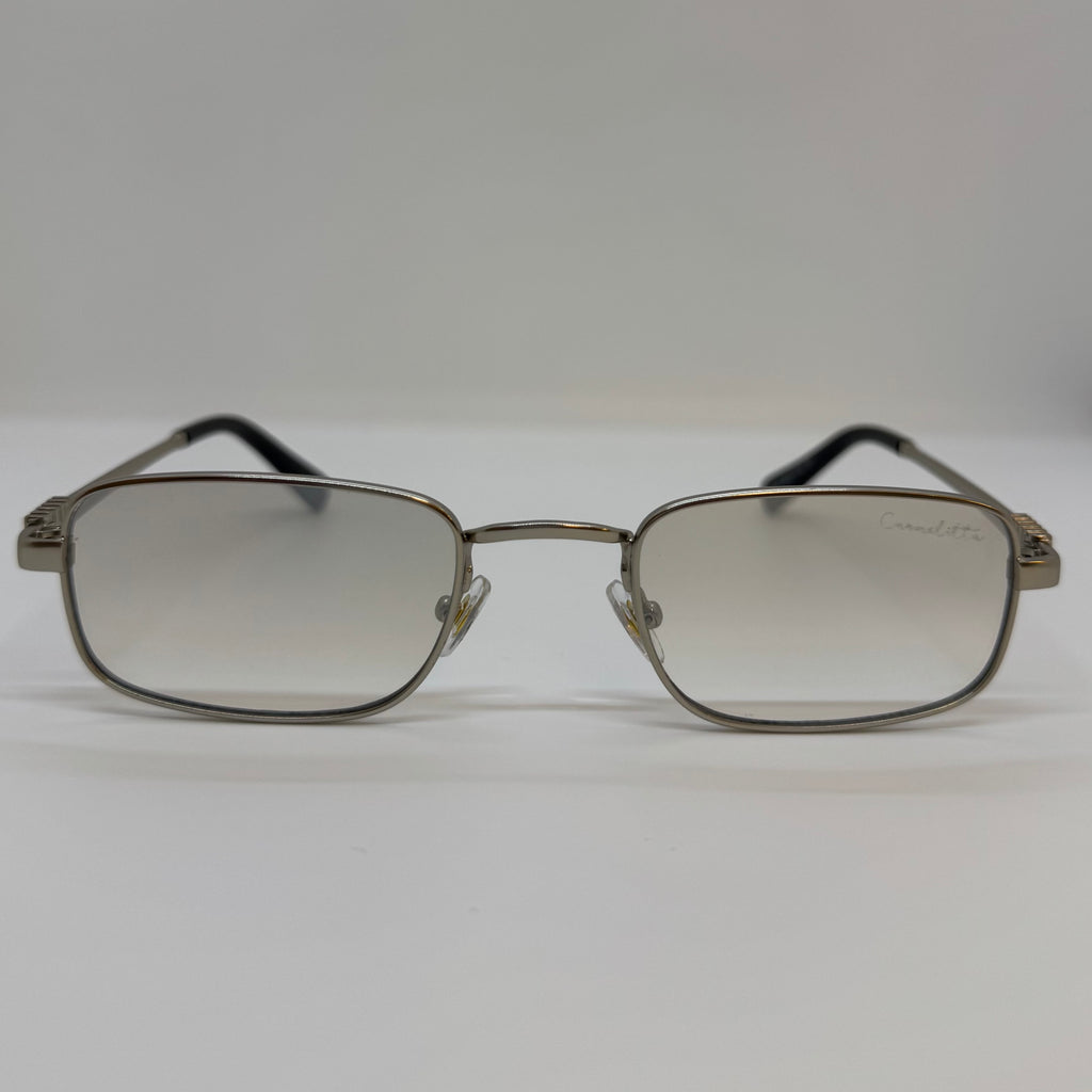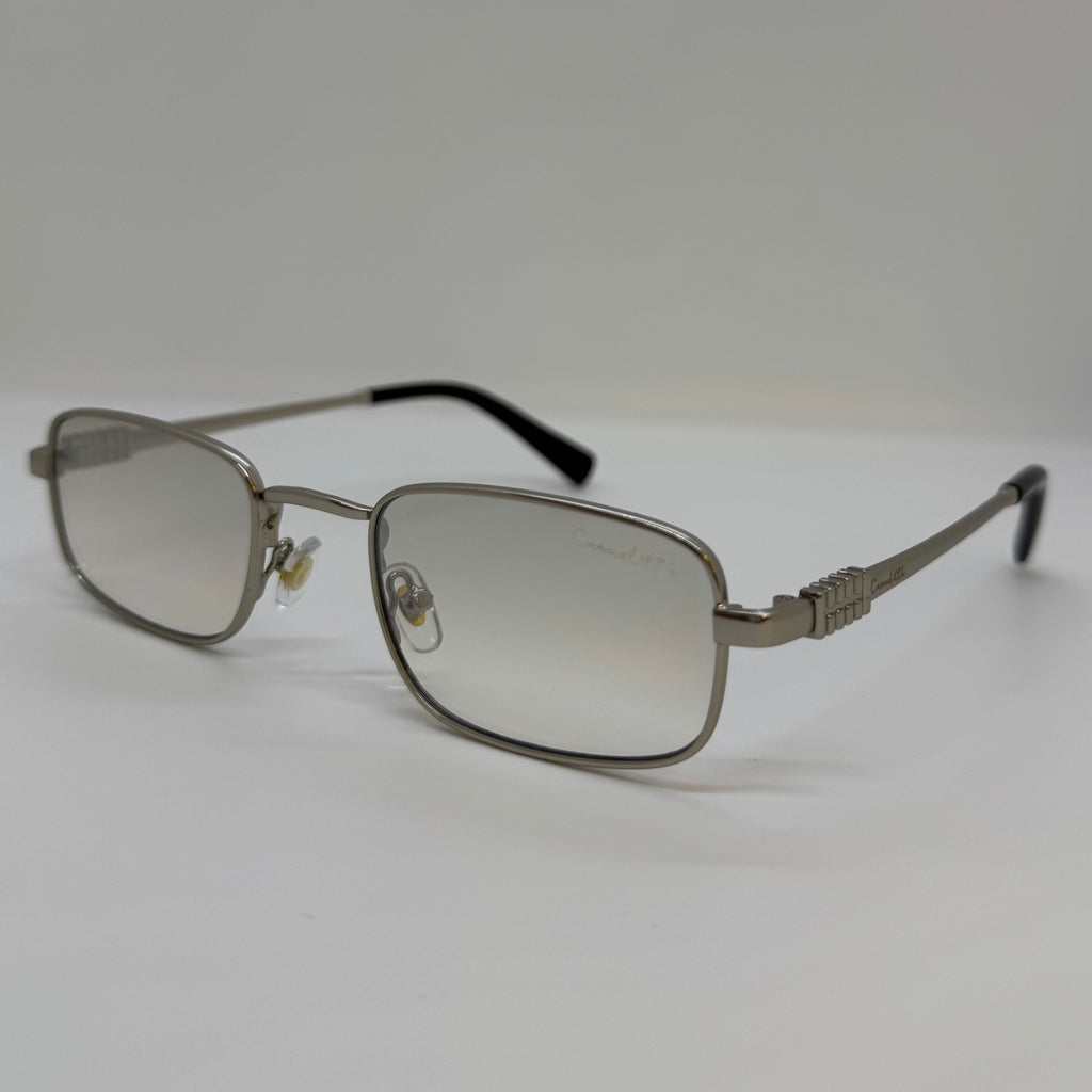 Óculos com hastes em metal prata com lente cinza degrades