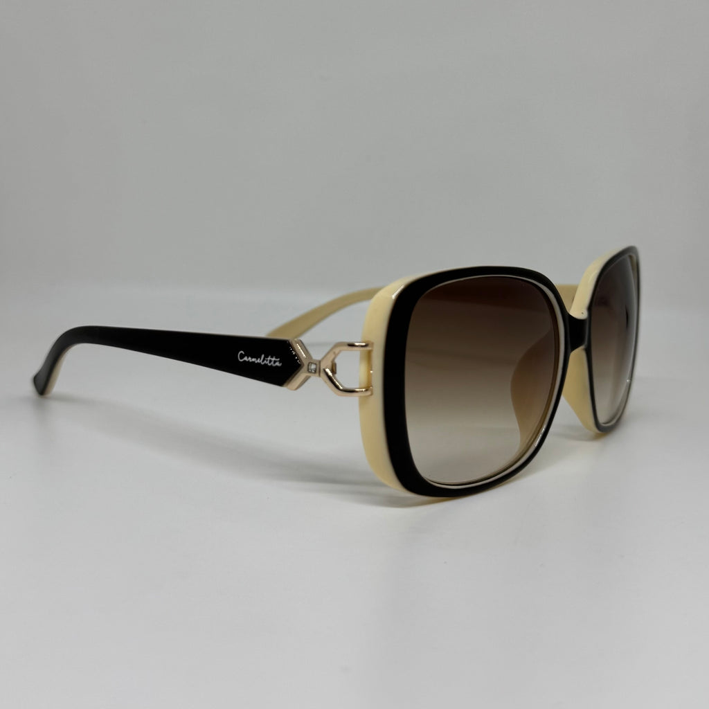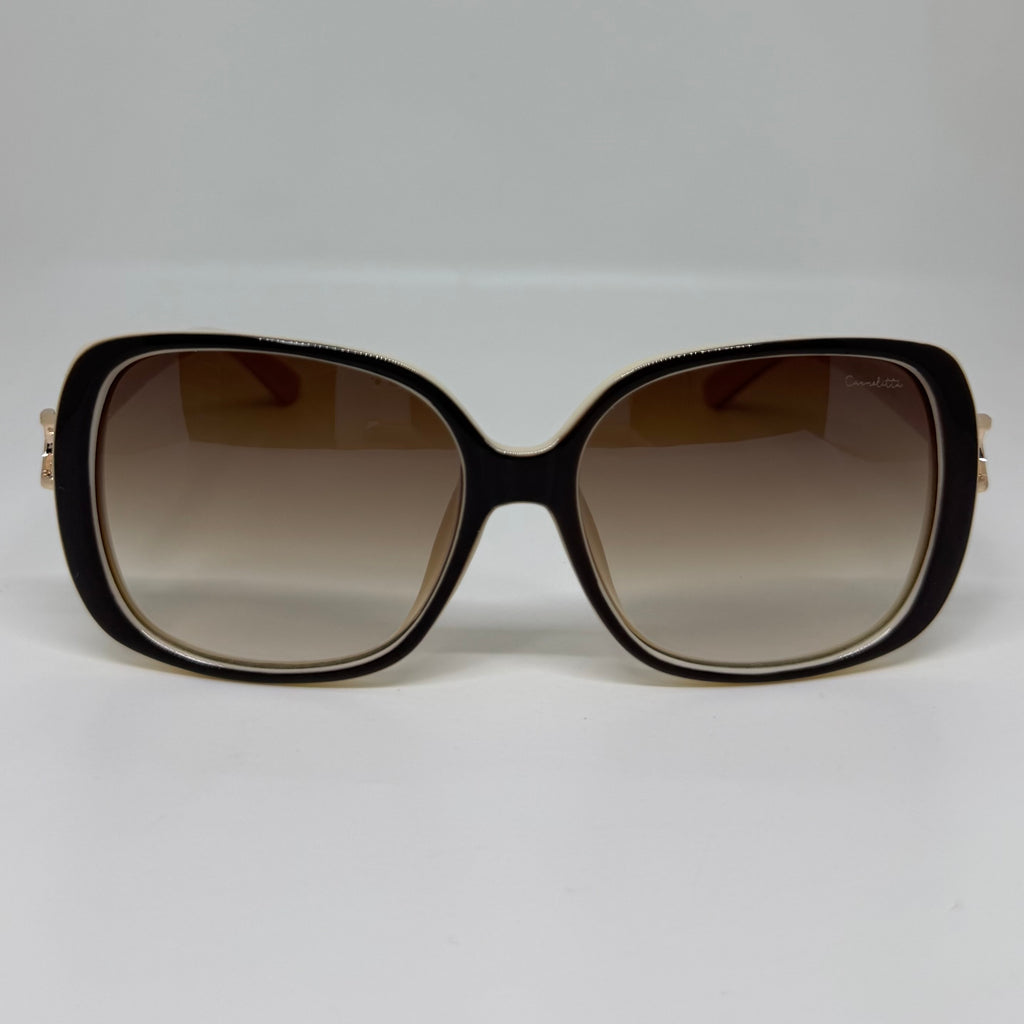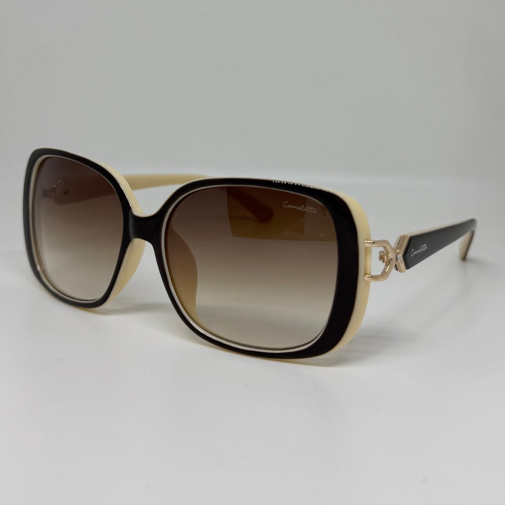 Óculos com hastes em acetato marrom, com parte interior off white e lente marrom degradei