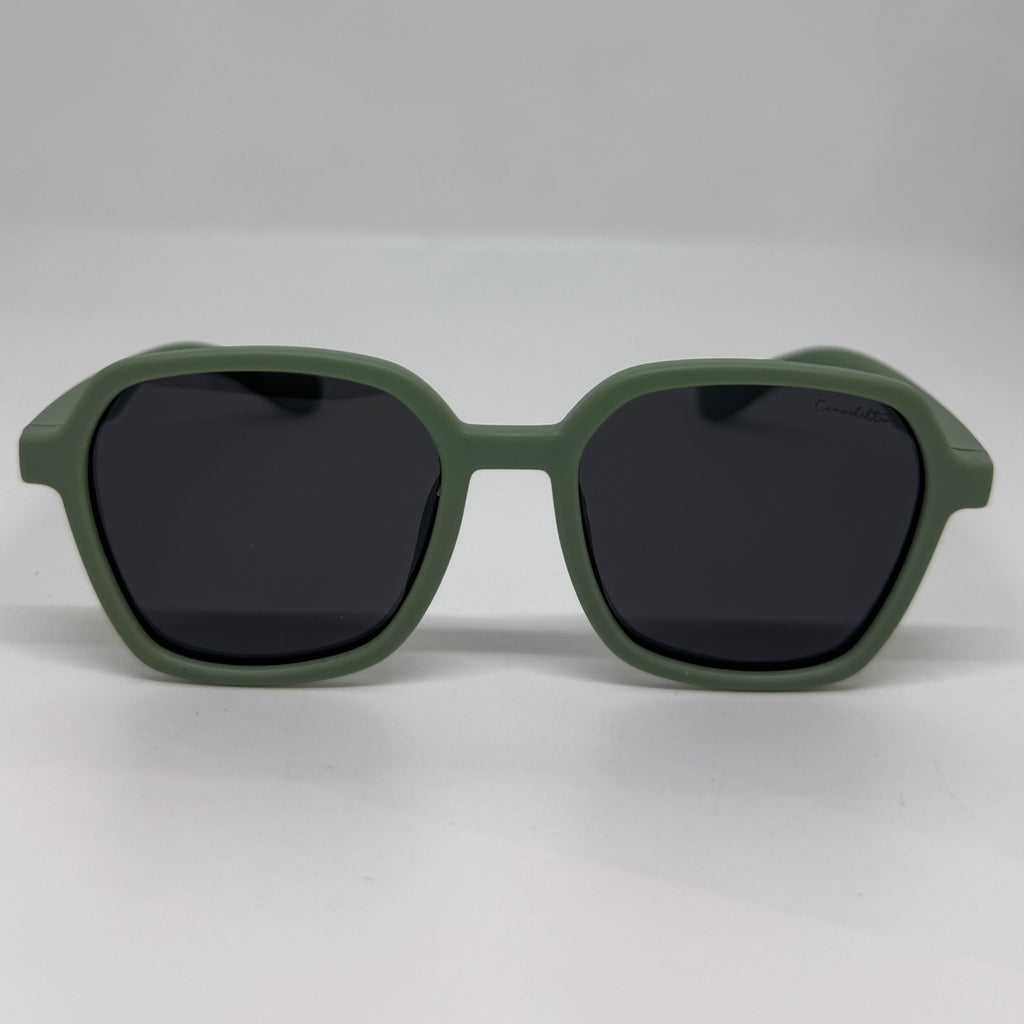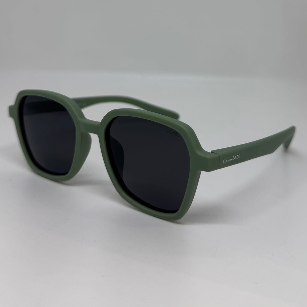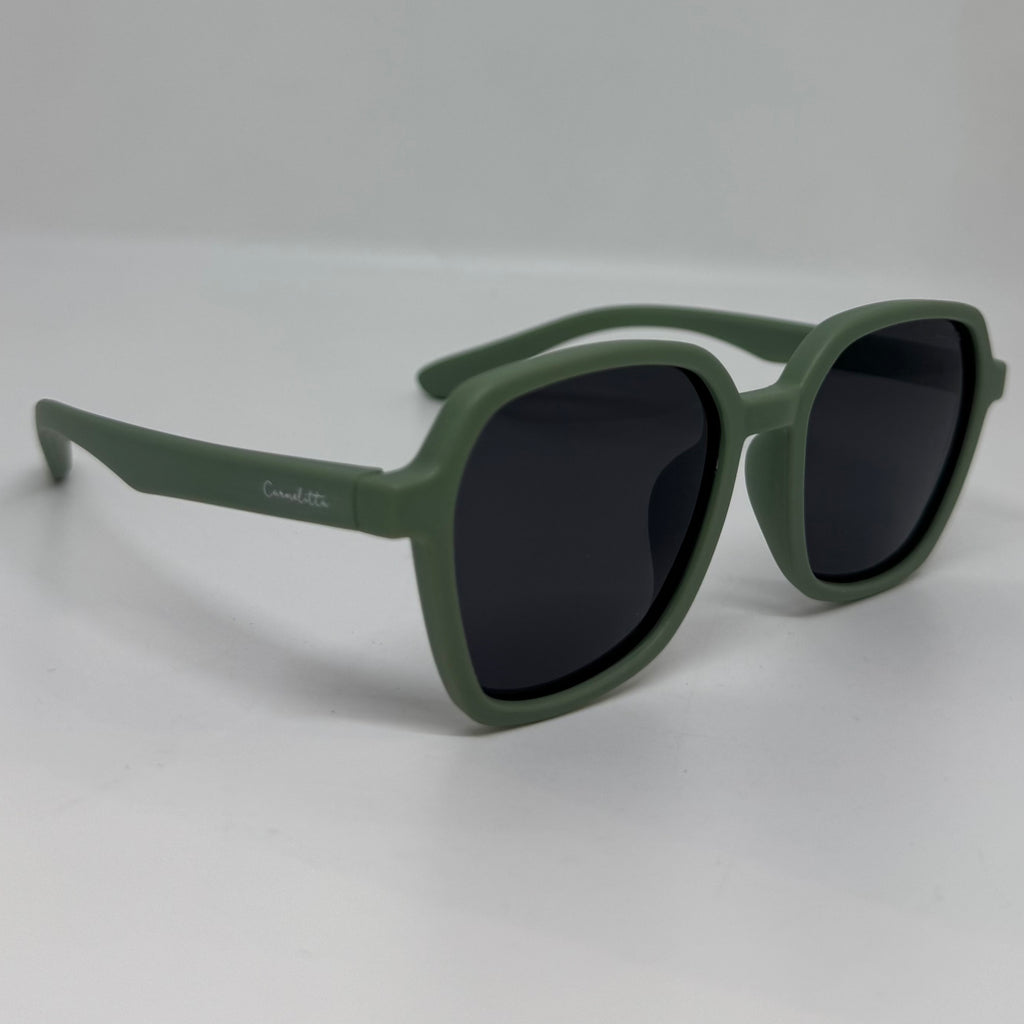 Óculos com hastes feito em silicone verde militar com lente preta polarizada. (hastes não quebram)